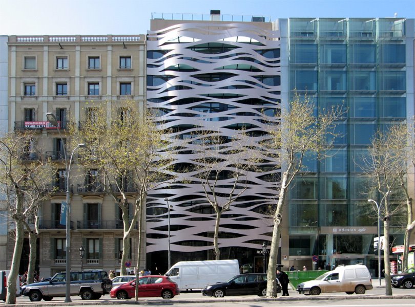 A new luxury apartment building for tourists has recently opened on Passeig de Gràcia, across from Antoni Gaudí’s Casa Milà, whose website states: “Located in a privileged area of Passeig de Gràcia, in the centre of Barcelona, with a facade designed exclusively by the prestigious architect Toyo Ito and tourist apartments offering luxury suites, Suites Avenue shines with a unique and avant-garde identity that meshes perfectly with Gaudi’s [sic] La Pedrera, just opposite.” (my italics).