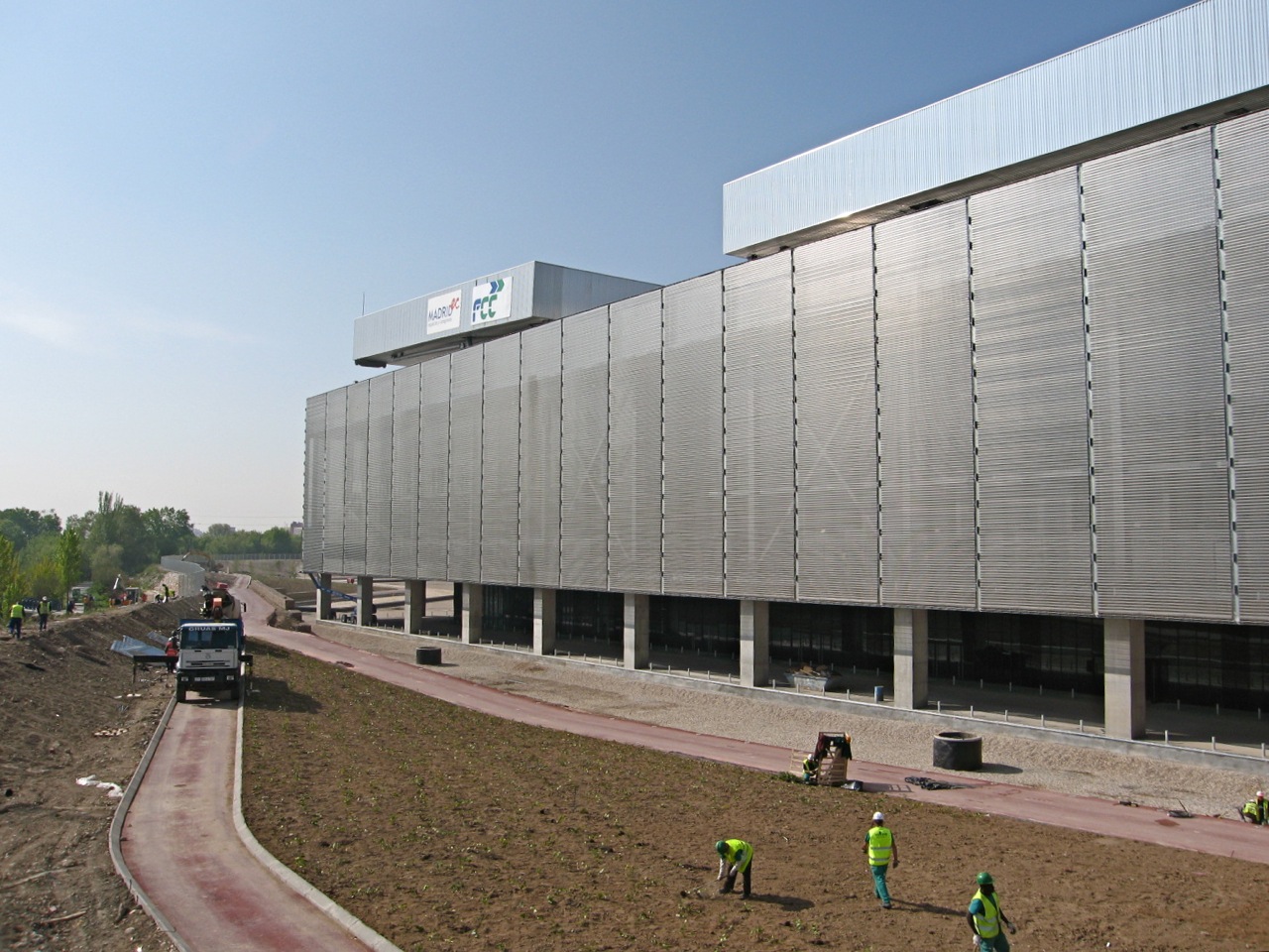 To this critic, it is the interior spatiality of the building more than its exterior appearance that makes the box magical. While a part of this has to do with the spectacular operable roofs and their ability to modulate daylight and the acoustics of the stadiums, it is actually thanks to the overall site strategy of the Manzanares Park Tennis Centre that this very unusual and surprising Piranesian space results within the Caja Mágica, a strategy that consists of accommodating the complex programme in a few, simple, carefully placed elements – a box, a wall, a bridge and some islands – and, more specifically, of clustering three stadiums within a single box. The more obvious kneejerk strategy would have been to disperse the three stadiums around the site as autonomous expressionist objects set upon a green lawn, not unlike the City of Arts and Sciences in Valencia. The strategy that has been deployed at the Manzanares Tennis Centre takes advantage of compatibilities among architecture, landscape and urbanism. This may be radical for architecture, but in sport it’s nothing new: it’s called team play.