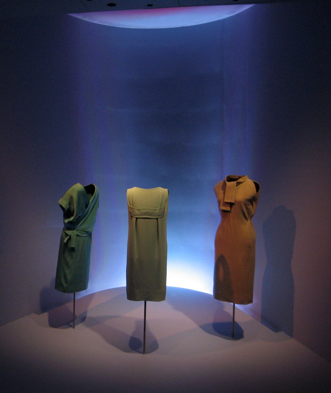 It is not until we finally reach the innermost parts of the building that it begins to look and feel like a museum and not an airport terminal, in large part because at this point we no longer see the rest of the building. Inside the suspended exhibition spaces, a display architecture consisting of a single, continuous, deeply undulating wall creates smooth, seamless niches within which Balenciaga’s work is sensually displayed, not unlike saints in the chapels of a church. The undulating walls in each of the six different exhibition galleries vary in curvature and colour according to the museum’s six different curatorial classifications: “Early Years, Day, Cocktail, Evening, Bridal and Essential.” The hidden lighting sources, the subdued lighting levels, and the unframed glass set into the smoothly curved niches amount to a simple but effective exhibition design strategy that displays Balenciaga’s work with dignity and elegance.