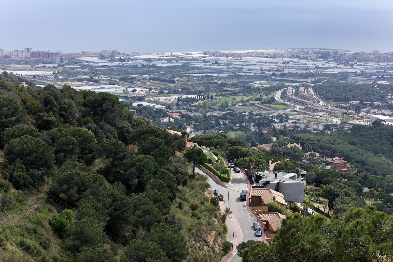 Eventually, we drive through a small town and up the side of a steep hill dotted with villas that enjoy privileged views of the Mediterranean. These homes seem to occupy the rugged hillside haphazardly, but the random pattern they make terminates cleanly and abruptly at the top. ‘That contour line represents the highest permissible building elevation,’ says Eduardo, pointing up while manoeuvring around sharp hairpin turns. I notice one house that looks nothing like the others: a flat-topped, concrete-and-glass structure with two angled arms cantilevering out of the slope, seemingly embracing the horizon. No confirmation required –- architecture is always identifiable by process of elimination.