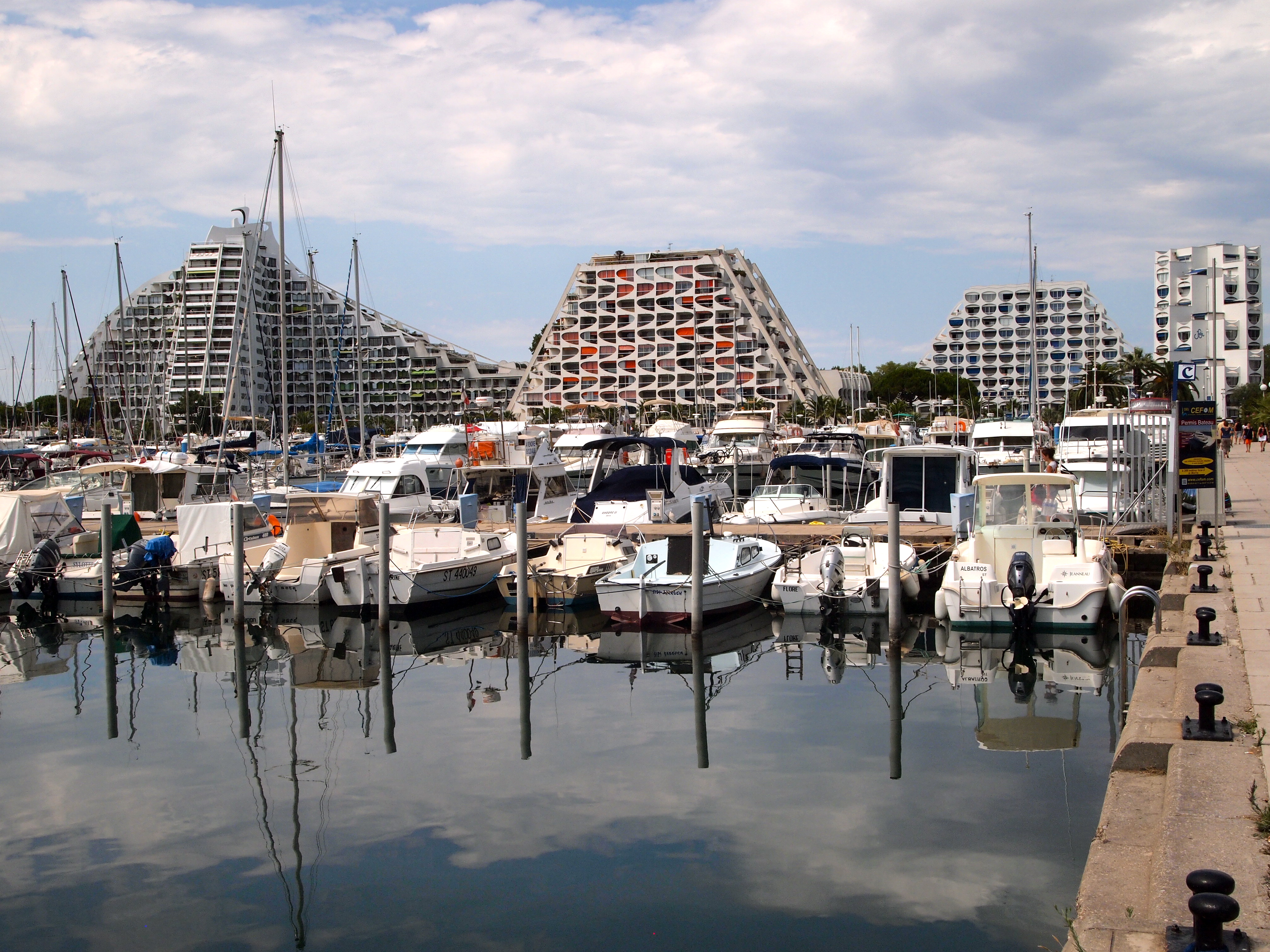 I first saw La Grande Motte in the summer of 1978, more than a decade before I would graduate from architecture school. Back then, the town left an impression on me for its large pyramid-shaped concrete buildings, and for the fact that the beaches had scores of young women who went topless; a bit of an eye-opener for a 14 year-old male just landed from North America.