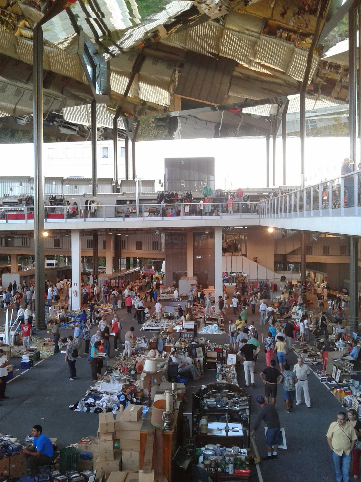 Flea markets are normally found under bridges, in empty parking lots, or in old industrial sheds. This flea market (which I already reported on in an earlier post, while it was under construction) is in a purpose-designed, competition-winning, big-budget work of capital-A architecture. Step right up. A monumental flea market. Only in Barceloca.