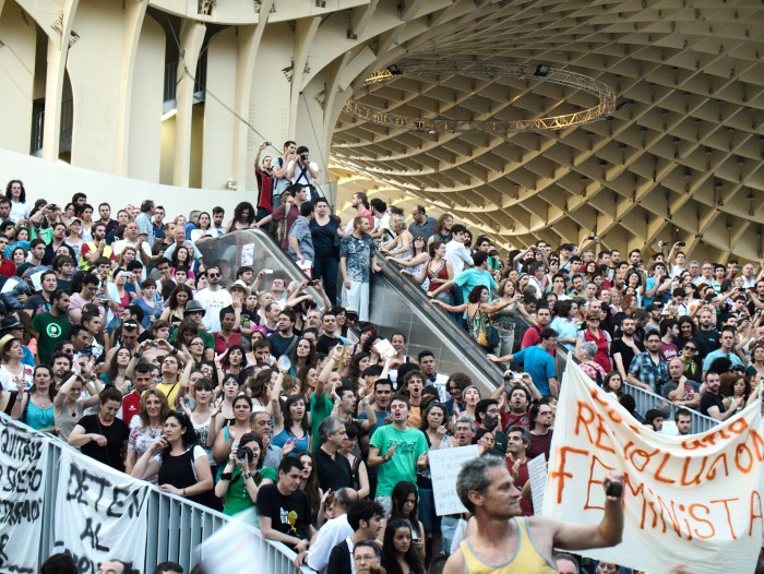 Shortly after its inauguration, Metropol Parasol, located on a public square in Seville’s old city centre, became an important site of a nationwide protest in plazas in every Spanish city against austerity cutbacks to public services. Protestors belonged to the Indignado movement, which inspired the 2012 ‘Occupy’ movement in North America. Soon after, the Socialist Party which had promoted Metropol Parasol was was voted out of office in municipal elections – a situation emerging from the necessity to partially privatize the scheme, which is operated by the construction company that built it, in order to finance it. Plaza de la Encarnación’s ‘mushrooms’ have since become a favourite spot for wedding photographs, Holy Week processions and rooftop strolls. The area immediately around the structure has been rejuvenated somewhat with trendy new cafés and bars. Yet few citizens will admit to liking it, preferring instead to complain about its high cost, its overwhelming size and the privatization of public space.