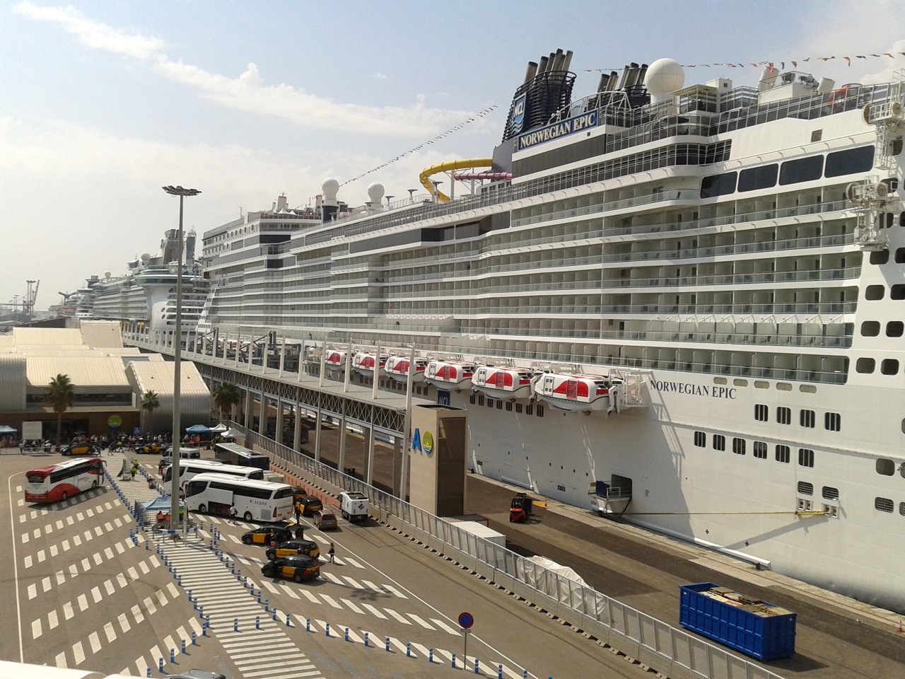 In fact, it is a flotilla, albeit, in theory at least, a flotilla that is supposed to bring peace and goodwill instead of war and destruction, which is what flotillas brought in the not-so-good old days. When this flotilla disembarks, entire fleets of taxis and motor coaches are there to welcome them, and to take the many thousand eagerly disembarking landlubbers into the city centre. Some –the most adventurous and the most physically fit– choose to walk to the centre, but for many this is is an undesirable option, since their time on land is limited. Many are also too overfed, overweight, and hungover to make the trek on foot.