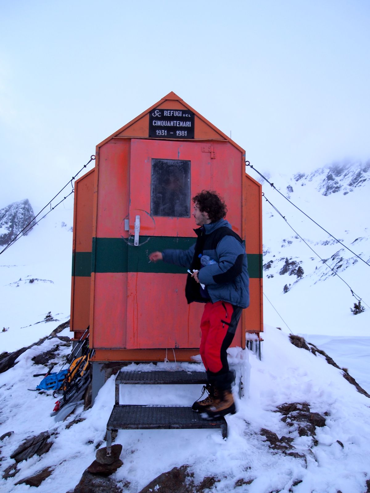 Normally, high alpine huts are intended to be everything that this hut is not: easy to see. The reasons are obvious: their purpose is to provide refuge to any souls who may be in need of it, be it to spend the night or to take shelter from a sudden snowstorm. The most essential thing about a mountain hut is that it needs to be visible from afar in order to make itself useful. Its presence needs to be made perceivable. Traditional vernacular stone and timber huts, for example, would always be sited as ‘landmarks’, at locations where they could be spotted from a distance. Modern prefab mountain huts, the kind that are delivered to their location by helicopter, are sometimes even painted dayglo orange to maximize their visibility in an emergency.