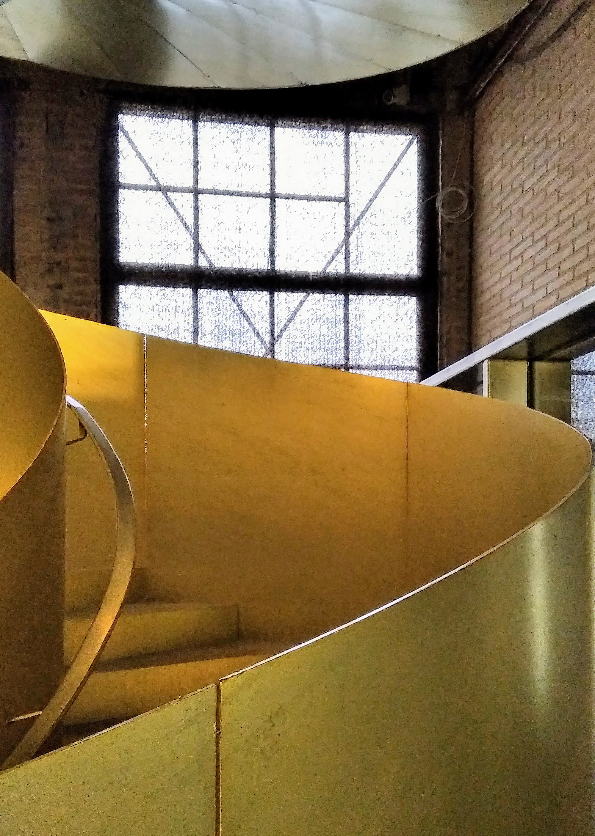 Baas’s intervention illustrates beautifully how our reception of art as art depends almost entirely on context, especially when it comes to minimalist art and its post-industrial display paradigm, or what art critic Brian O’Doherty calls “context as content.” But it also illustrates, albeit somewhat obliquely and at a more urban scale, Venturi, Scott-Brown and Izenour’s “decorated shed” theorem, except that here the shed is old and industrial instead of new and commercial, and the “decoration” addresses the more pedestrian context of Parc Central del Poblenou (by Jean Nouvel) instead of the Las Vegas Strip. Baas’s front porch and tower intervention even works as a “sign,” both in the museum-logo sense as well as –more interestingly for a history museum— as a sign of the times, encapsulating both Barcelona’s grimy industrial period, when it was known as the “Manchester of the South,” and its post-industrial contemporaneity as a design and leisure tourist destination. The knife-sharp contrast between the rough shed and the gilded decorative art mirrors Barcelona’s yin yang unity of grit and glam; of Biutiful and Vicky, Cristina, Barcelona.