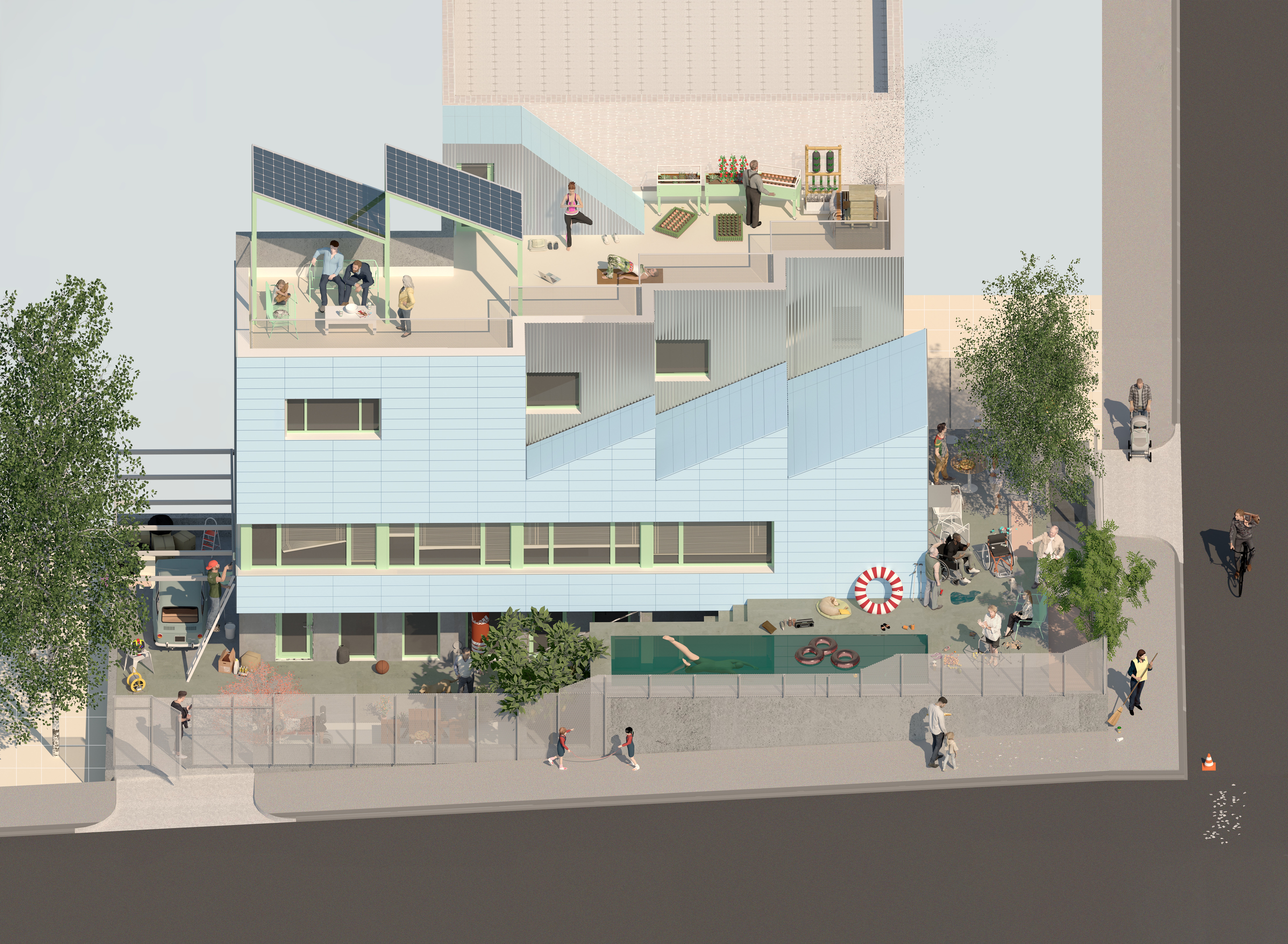 With its idiosyncratic architecture and multiple gardens, Beyond-the-Family Kin House certainly appears from the outside to be a single-family house, belying the complex duplex that is contained within. But its multiple living arrangements are moreover flexible, permitting different kinds of social relations through architecturally adjustable degrees of privacy and community. The house can thus nevertheless be transformed into the very thing it both critiques and emulates, if desired. What has been created here, in the end, is simply a much better house.