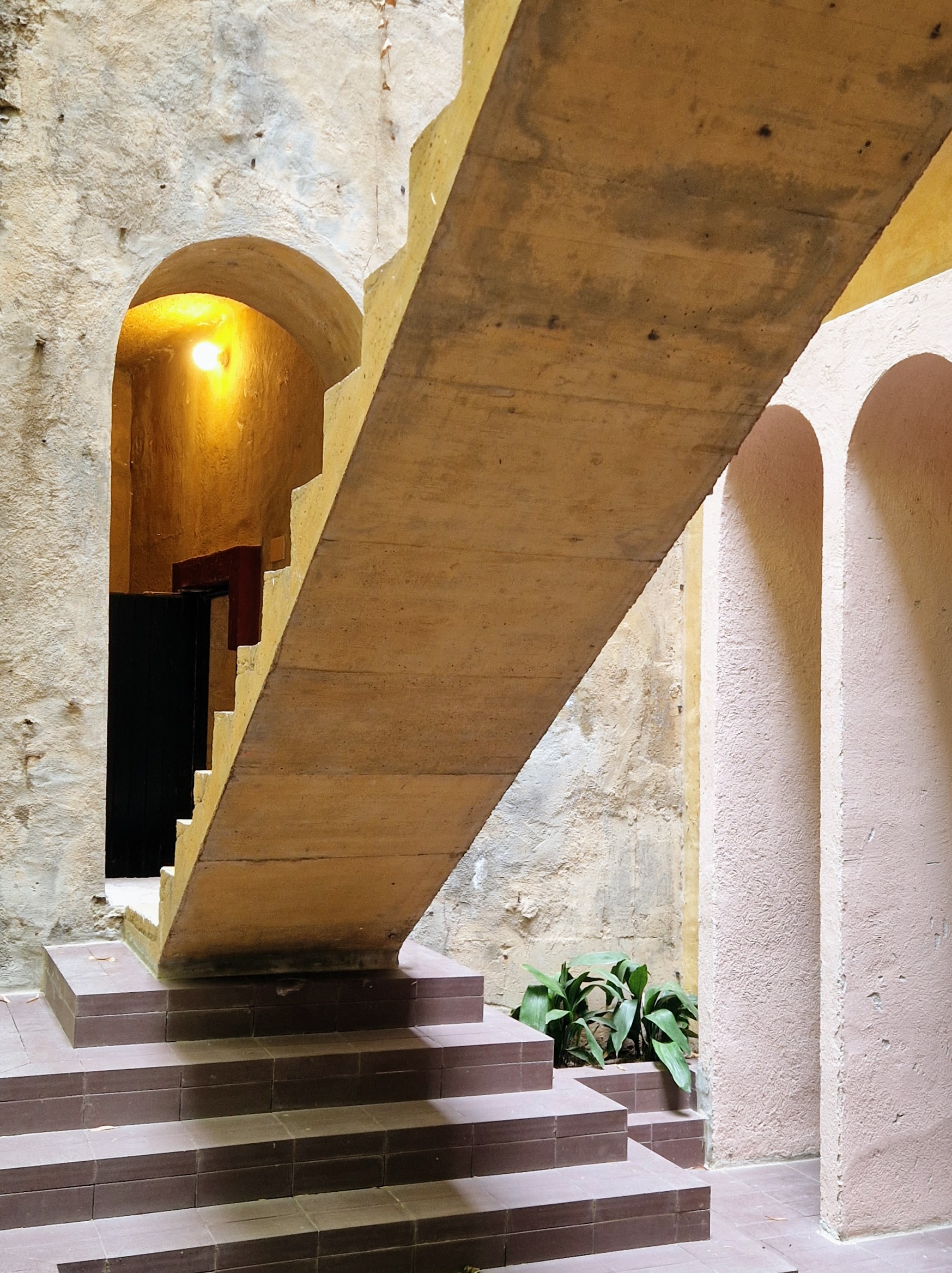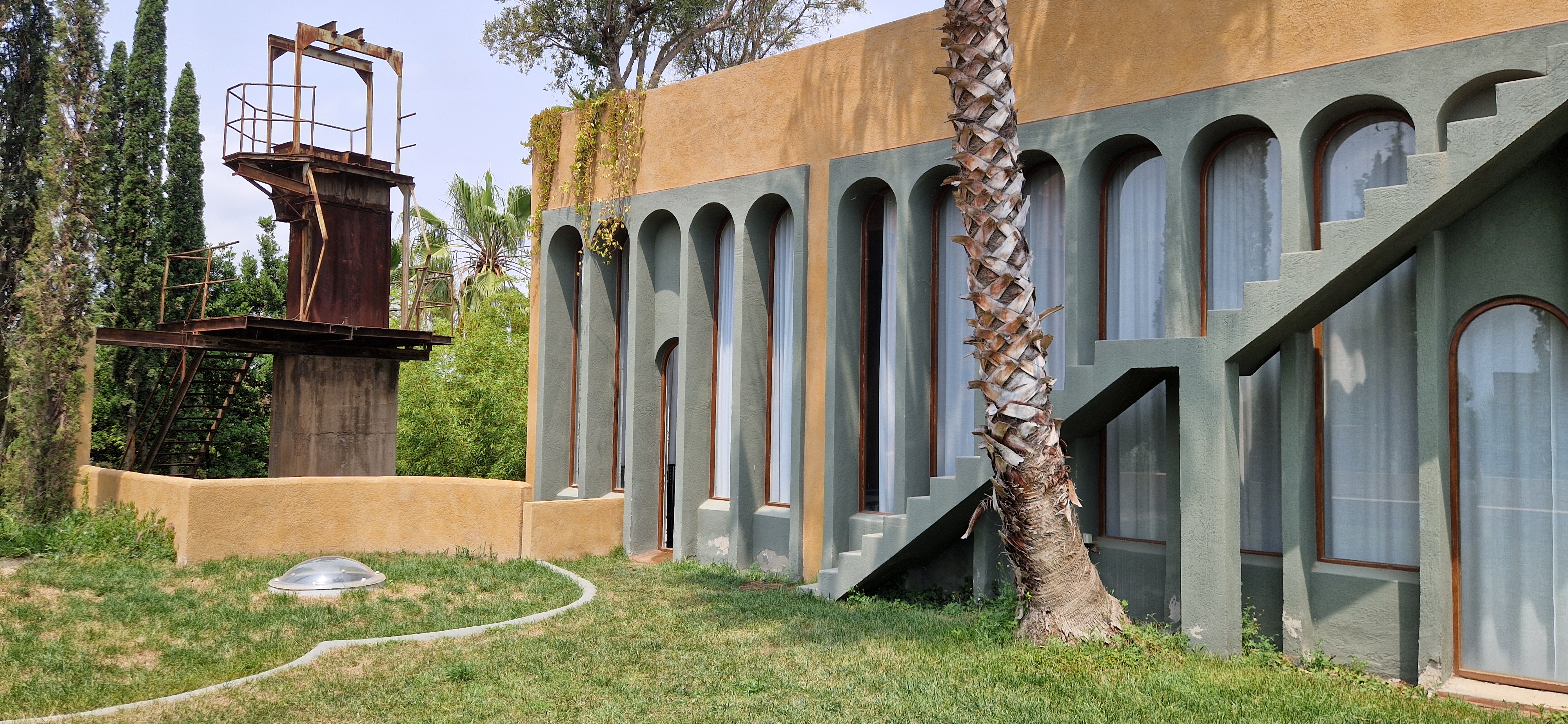 Ricardo Bofill lived and worked in La Fábrica until his death in 2022, constantly transforming it. ‘The factory will always be a work in progress, which is part of its fascination,’ he once wrote. The site continues to undergo transformation today; upon approaching the entrance gate, a pair of old, very thick and tall concrete walls were recently stained in ochre, partially concealing the ageing material beneath. Inside the grounds, new paint has been applied to interventions more than 50 years old, making them appear new again. These recent renovations reveal La Fábrica’s fluctuating identity, inciting change while adapting to change itself.