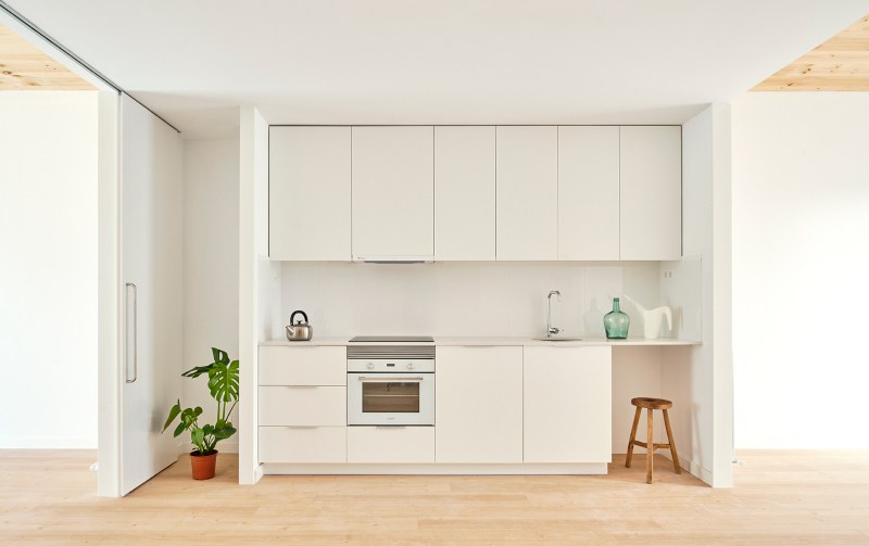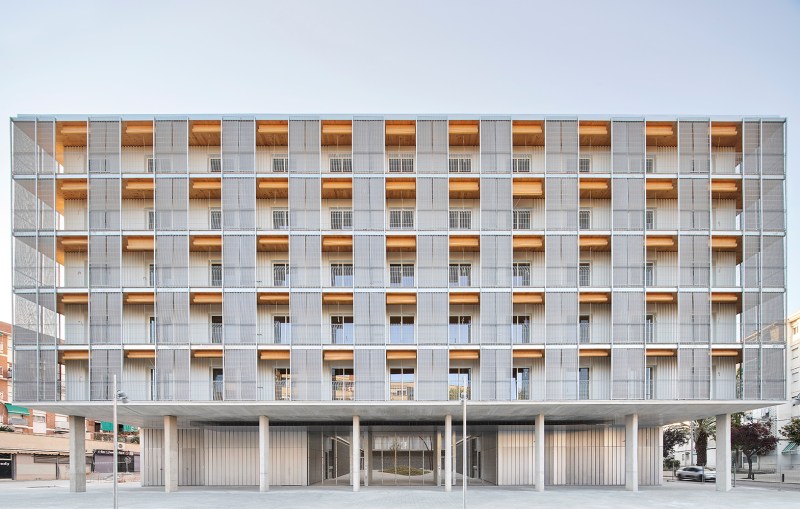 In the Modulus Matrix housing block, the structural material of mass-timber was the very starting point of its architectural design. More specifically, architects Peris+Toral began the architectural design process by determining and comparing the ideal structural spans of different thicknesses of CLT so that an optimized structural grid could be designed that best suits the given site and program. In Spain, CLT is relatively expensive compared to concrete and steel, putting it beyond reach of social housing budgets unless used very efficiently. The standardized, highly repetitive grid of Modulus Matrix is the product, then, of an affordability imperative.